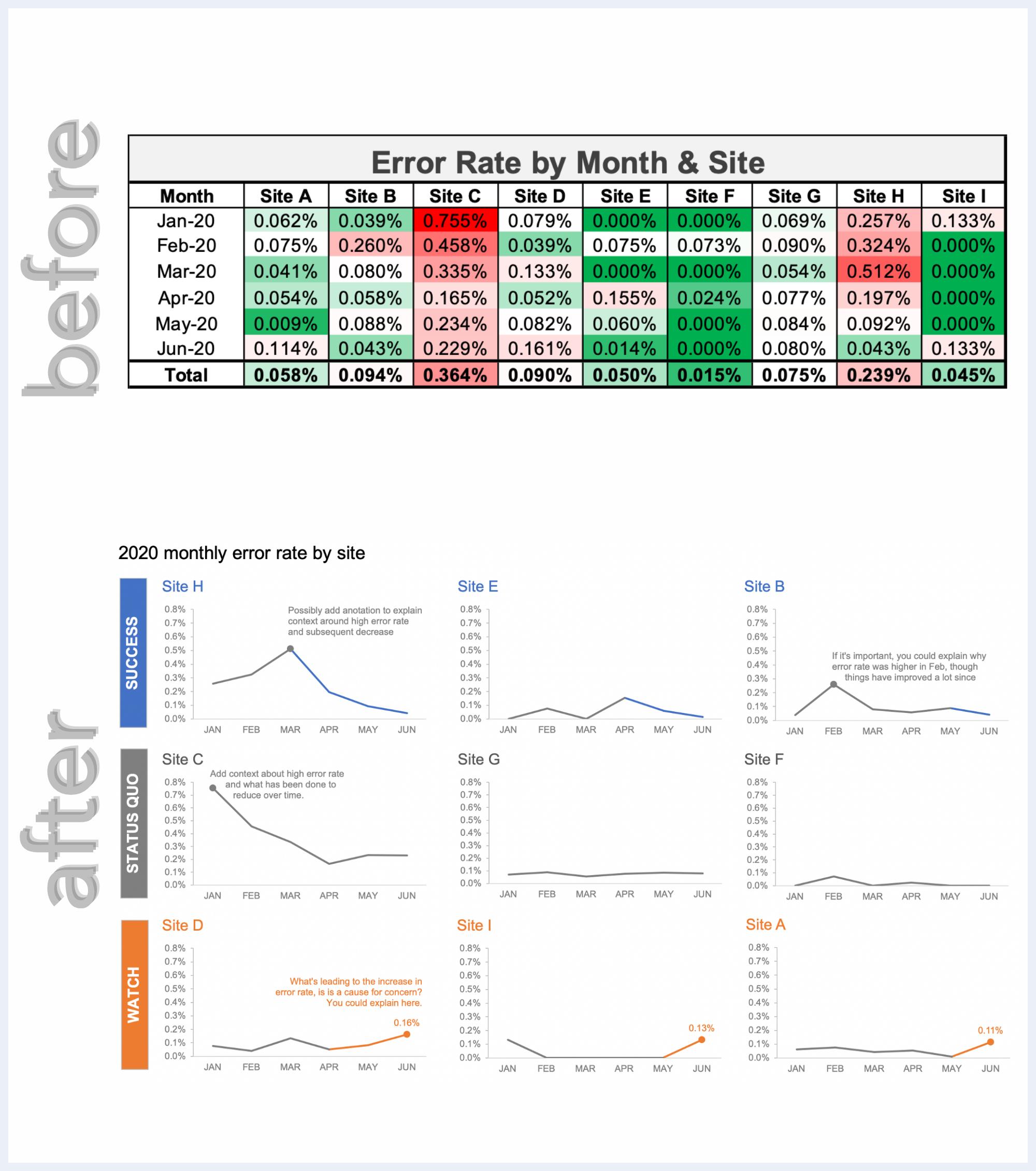 a sample of lessons & redesigns we’ve shared with clients as taught them to improve their data communications
