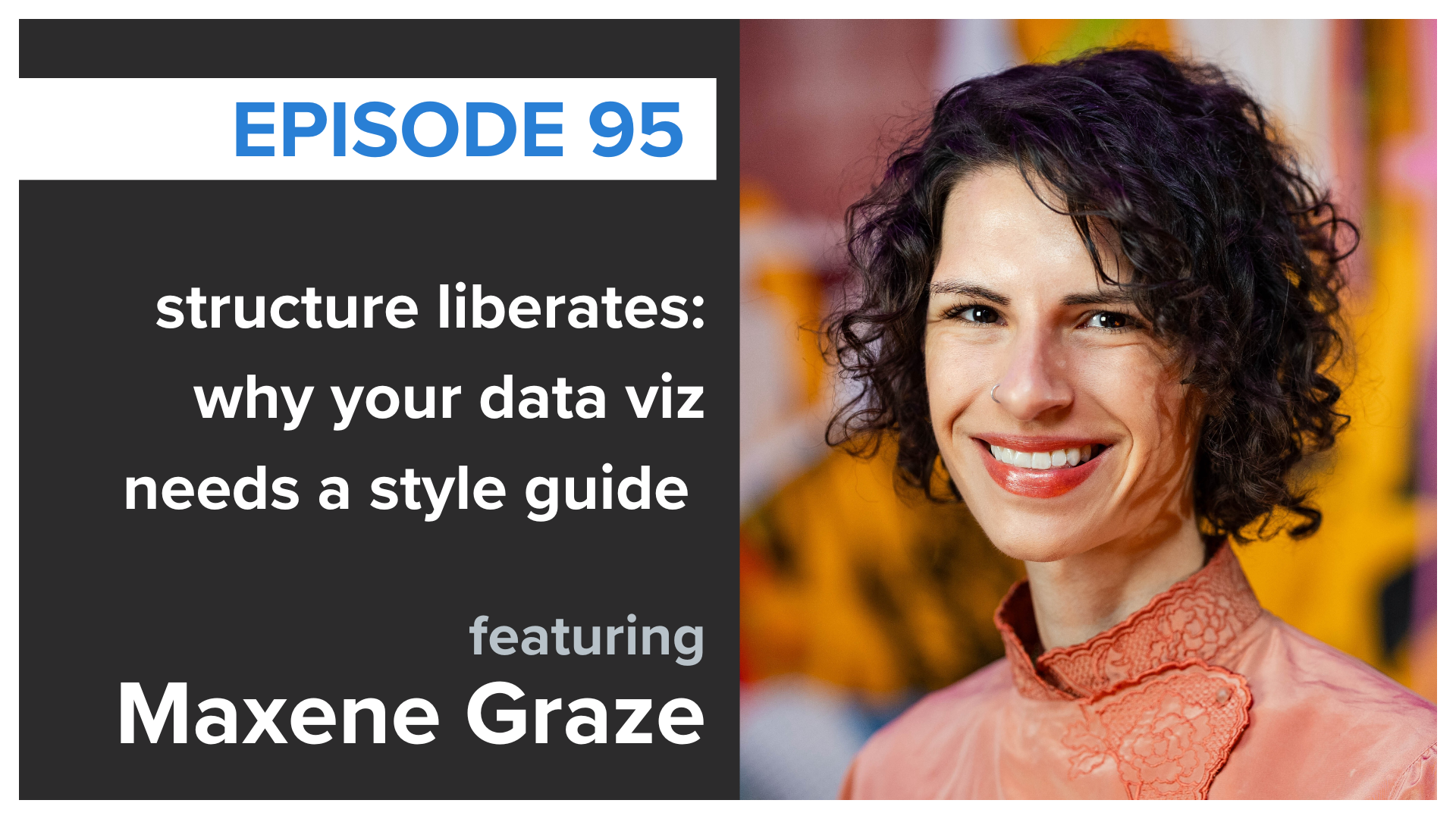 How do you keep your data visuals effective and on brand? In this episode, Simon chats with Maxine Graze about building data visualization style guides, providing several ideas on how to bring clarity and consistency to your data storytelling. LISTEN
